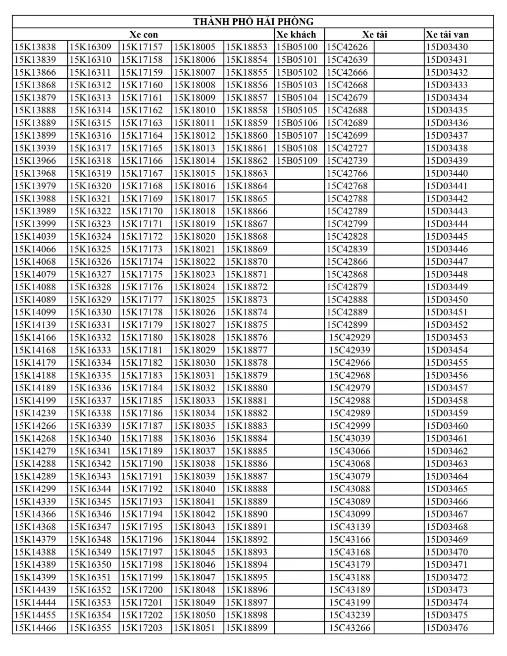 Xe van đăng ký tại Hải Phòng sẽ có ký hiệu là 15D-xxx-xx, giúp phân biệt rõ ràng giữa các loại xe khác nhau. Đặc biệt, xe của các doanh nghiệp có vốn đầu tư nước ngoài hay xe thuê sẽ theo một quy trình riêng biệt nhưng vẫn có liên quan đến những ký hiệu này. Đến năm 2025, Hải Phòng sẽ triển khai thêm ký hiệu mới là 34, bên cạnh 15 và 16, nhằm đáp ứng nhu cầu gia tăng và tạo sự tiện lợi hơn trong việc quản lý phương tiện.