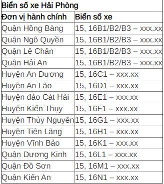 Theo quy định, mã biển số xe cho Hải Phòng là 15 và 16, trong đó các phương tiện thường mang biển số 15, tượng trưng cho vùng đất này. Các biển số xe mới tương ứng với từng quận như quận Hồng Bàng là 15, 16B1/B2/B3, hay quận Ngô Quyền cũng có cùng mã số rất dễ nhớ, tạo sự thuận lợi cho người dân và khách du lịch khi di chuyển.