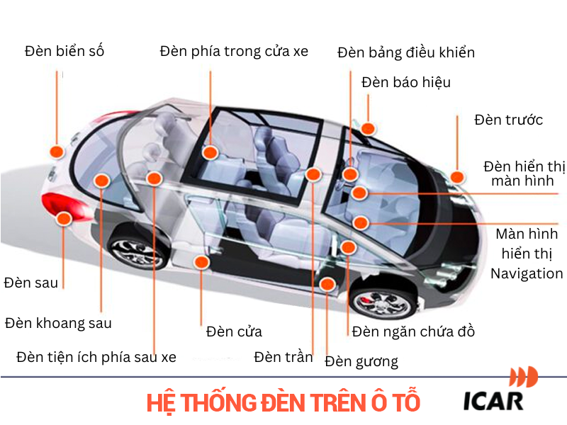 Đèn pha, đèn hậu, đèn sương mù, đèn xi nhan chiếu sáng xe