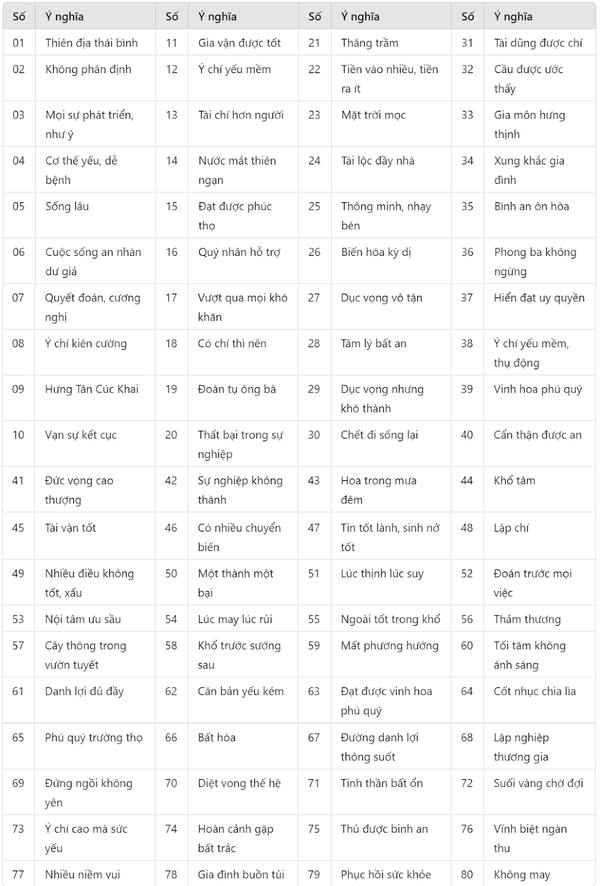 Mỗi con số đều mang một thông điệp riêng. Số 1 thể hiện sự độc nhất vô nhị, khởi đầu mạnh mẽ, trong khi số 2 lại tượng trưng cho sự hạnh phúc và cân bằng. Các số tứ quý như 6666, 8888 hay 9999 thường được săn đón vì chúng biểu trưng cho sự thịnh vượng và tài lộc.