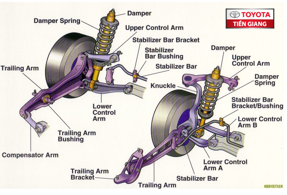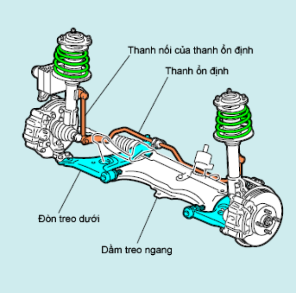 Hệ thống treo đóng vai trò cực kỳ quan trọng trong việc kết nối khung xe ô tô với bánh xe và khung gầm. Nằm ở phía trên và phía dưới cầu trước, nó giúp bánh xe luôn giữ liên kết chặt chẽ với khung xe, mang lại sự ổn định và an toàn khi di chuyển.