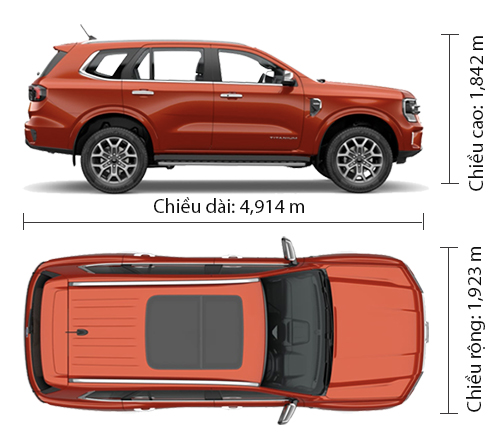 Ford Everest 2025 là một mẫu SUV ấn tượng với kích thước tổng thể rất nổi bật. Cụ thể, chiều dài, chiều rộng và chiều cao của xe lần lượt là 4.914 mm, 1.923 mm và 1.842 mm. Sự nâng cấp này không chỉ mang lại vẻ bề ngoài mạnh mẽ mà còn mở rộng không gian bên trong, tạo sự thoải mái cho cả 7 hành khách.