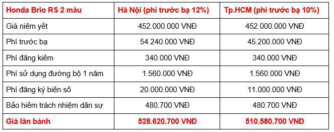 Điều thú vị là mức phí lăn bánh tại hai thành phố lớn này không chênh lệch quá nhiều, tạo điều kiện thuận lợi cho khách hàng. Nếu bạn đang tìm kiếm một chiếc xe vừa túi tiền mà vẫn đảm bảo chất lượng, Honda Brio chắc chắn là lựa chọn lý tưởng. Hiện tại, Honda cũng có những ưu đãi hấp dẫn như hỗ trợ vay trả góp lên đến 80%, giúp khách hàng dễ dàng sở hữu xe hơn.