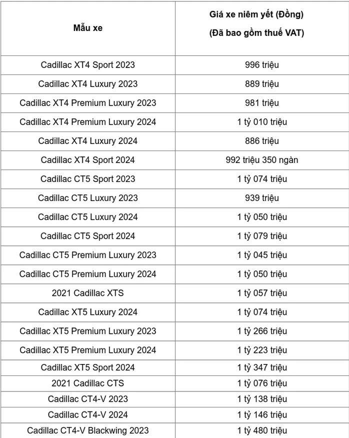 Ngoài ra, bạn cũng cần tính đến phí bảo trì đường bộ khoảng 1.560 đồng, cùng với giá xe Cadillac XT4 bắt đầu từ 35.795 USD (tương đương khoảng 818.1 triệu đồng). Thực tế, khi về đến Việt Nam, giá này thường tăng gấp 3-4 lần do các loại thuế và phí liên quan.
