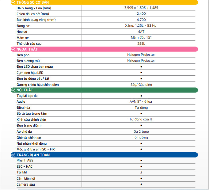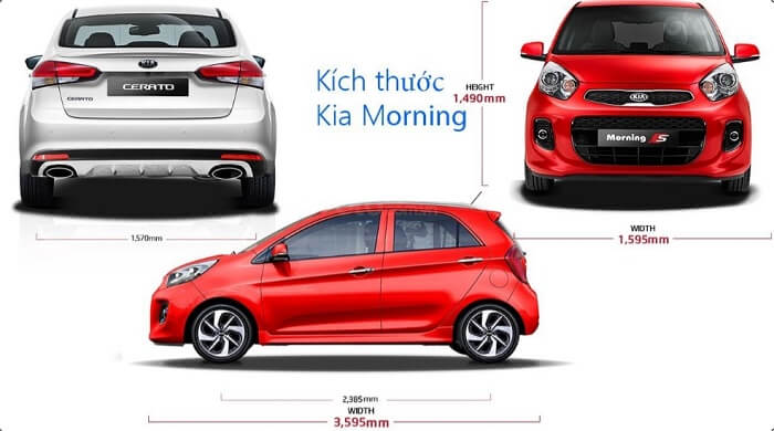 Kia Morning là một mẫu hatchback nhỏ gọn hấp dẫn, lý tưởng cho những ai sống trong thành phố. Với kích thước tổng thể 3.595 x 1.595 x 1.485 mm và chiều dài cơ sở 2.400 mm, chiếc xe này mang đến sự linh hoạt trong di chuyển, đặc biệt là trong các khu vực đông đúc. Bán kính vòng quay chỉ 4.700 mm giúp việc điều khiển trở nên dễ dàng hơn bao giờ hết.