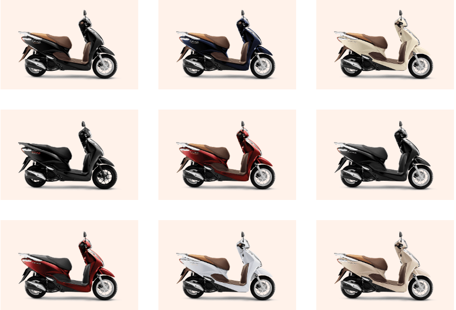 Nhìn chung, bảng màu đa dạng của Honda Lead như đen, trắng, đỏ, xanh lam và xanh ngọc cho phép người dùng thỏa sức lựa chọn theo sở thích cá nhân. Những gam màu mới lạ, hiện đại như bạc mờ và xanh xám không chỉ thời thượng mà còn giúp tôn lên phong cách trẻ trung cho người sở hữu.