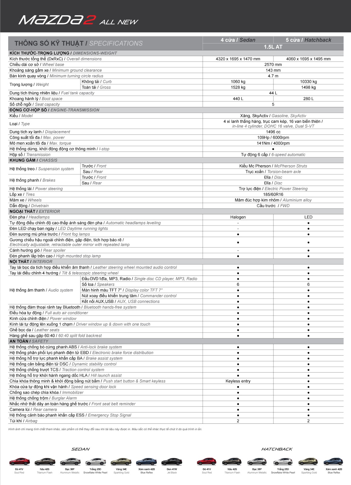 Tổng kết lại, Mazda 2 2016 là một mẫu xe nổi bật trong phân khúc hatchback với thiết kế hiện đại, công nghệ tiên tiến và hiệu suất vượt trội. Những thông số kỹ thuật ấn tượng như động cơ mạnh mẽ, tính năng an toàn hàng đầu và khả năng tiết kiệm nhiên liệu xuất sắc đã chứng minh được giá trị của nó trên thị trường. Với sự kết hợp hoàn hảo giữa phong cách và tiện nghi, Mazda 2 2016 không chỉ đáp ứng nhu cầu di chuyển hằng ngày mà còn mang đến trải nghiệm lái xe thú vị và ấn tượng cho người sử dụng.