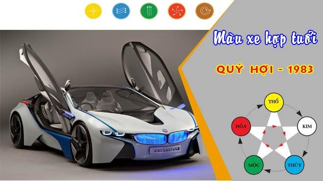 Người sinh năm 1983, tuổi Quý Hợi, thuộc mệnh Đại Hải Thủy và vì vậy phải lưu ý đến việc chọn màu sắc xe cộ để mang lại may mắn cho bản thân. Theo thuyết tương sinh ngũ hành, màu sắc xe phù hợp nhất với mệnh Thủy thường là màu trắng, ghi, hay bạch kim, vì đây là những màu thuộc mệnh Kim, giúp bổ trợ cho mệnh Thủy.