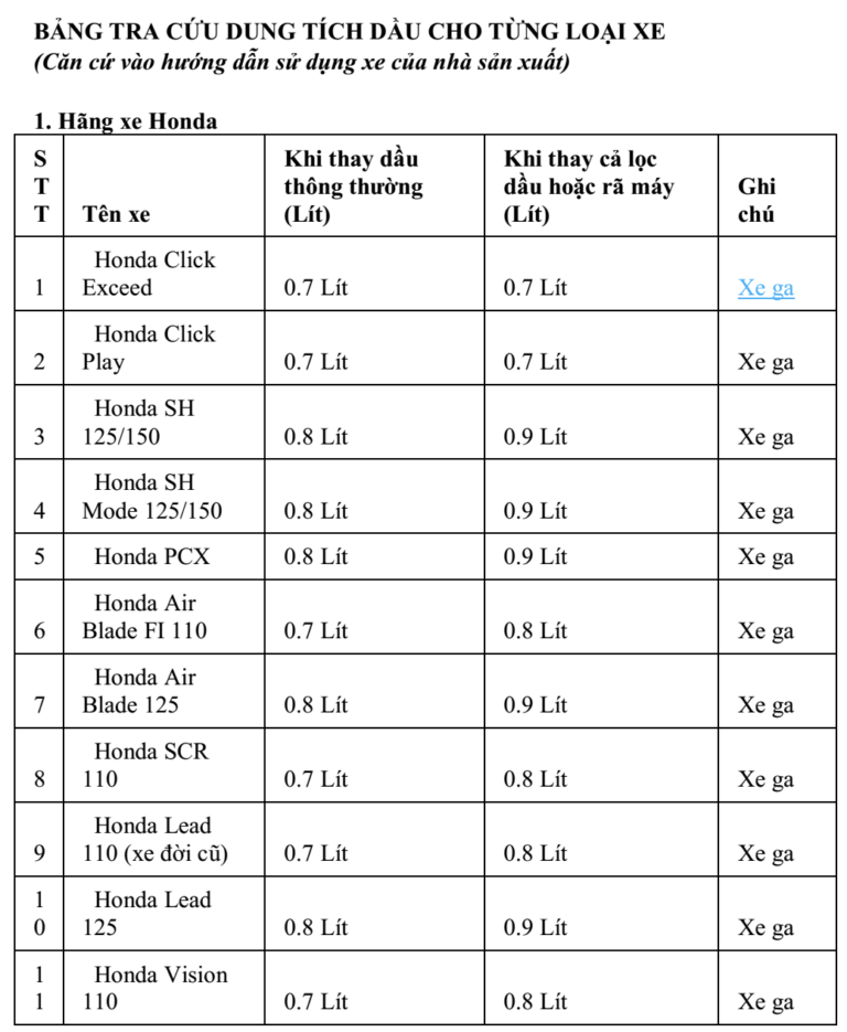 Bạn có thể tham khảo thêm thông tin chi tiết về thông số dầu giảm xóc cho xe máy Honda tại: