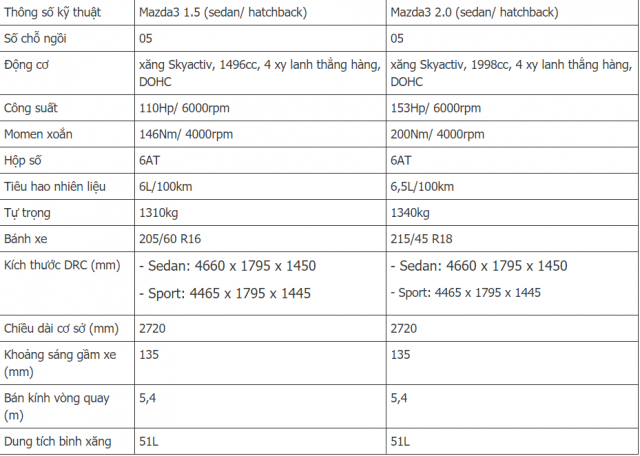 Trên đây là những thông số kỹ thuật nổi bật của Mazda 3 Hatchback 2017, một mẫu xe không chỉ gây ấn tượng với thiết kế ngoại thất thể thao, mà còn sở hữu những tính năng vượt trội về động cơ, an toàn và công nghệ. Sự kết hợp hoàn hảo giữa hiệu suất và tiện ích đã biến Mazda 3 thành một lựa chọn hàng đầu cho những ai yêu thích sự năng động và hiện đại. Với những đặc điểm nổi bật này, Mazda 3 Hatchback 2017 xứng đáng là người bạn đồng hành lý tưởng trên mọi cung đường.
