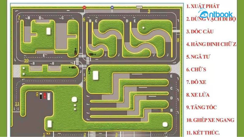Bài thi sa hình B2 bao gồm 11 bài thi chính, từ xuất phát cho đến những tình huống mà người lái xe thường gặp, như dừng nhường đường cho người đi bộ hay dừng xe đúng cách. Mỗi lỗi vi phạm sẽ bị trừ từ 5 đến 20 điểm, và có những lỗi nghiêm trọng đến mức thí sinh còn có nguy cơ bị truất quyền sát hạch ngay lập tức.