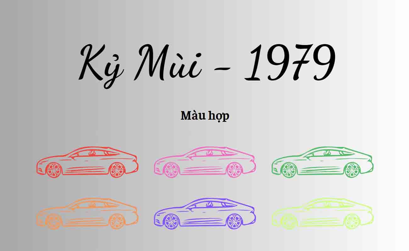 Người sinh năm 1979, tuổi Kỷ Mùi, thuộc mệnh Hỏa. Khi chọn màu xe, điều quan trọng là chọn màu phù hợp với mệnh của mình để thu hút tài lộc và may mắn. Màu tương sinh và hợp nhất với người Kỷ Mùi chính là các tông đỏ, cam, hồng và tím. Những màu này không chỉ mang lại sự may mắn mà còn thể hiện được cá tính mạnh mẽ và sự tự tin của người sở hữu.