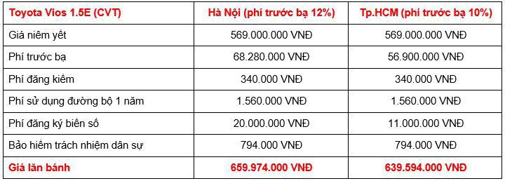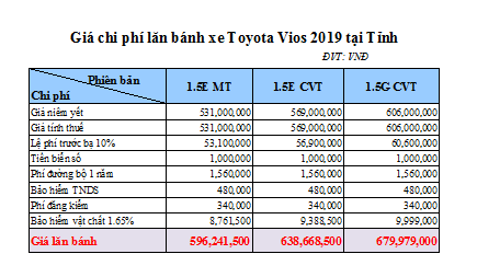 Cụ thể, lệ phí trước bạ cho xe này là 72.720.000 đồng, cộng với phí đường bộ hàng năm là 1.560.000 đồng và bảo hiểm bắt buộc 480.700 đồng. Với mức giá này, Vios 2019 bản G CVT vẫn được xem là lựa chọn hợp lý cho những ai đang tìm kiếm một chiếc xe vừa tiết kiệm, vừa tiện nghi.